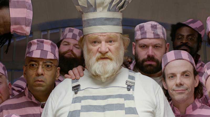 Other noteworthy set-pieces include the elaborate slapstick moment inside a barber shop and the Wes Anderson-like prison escape. In fact, I have to admit that watching the whole prison scene (the introduction of oddball inmates, the whimsical production design alongside the use of pastel colour palette and the symmetrical framing) is akin of experiencing an elaborate segment directed by the eccentric auteur himself.